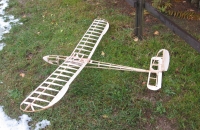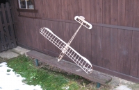 Velký tulák,konstrukce Josefa Dvořáky ze Švábenic /z roku 1953. Model jsem stavěl jako kluk před 50 lety,nedavno jsem objevil plánek modelu a znovu si ho postavil jako historika. Materiál , smrkové lišty , lipové dřevo, překližka.Model je zatím bez potahu/ v dílně mám nyní zimu a nejde potahovat, / potah bude papírem/ žlutý modelspan/.Moc se těším na zálet, Má háček na vytažení gumicukem.Model bude RC, na dvě serva 6 gr. /směrovka, výškovka.