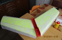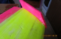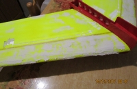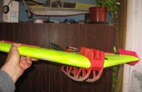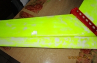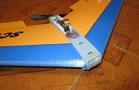 Samokřídlo jsem koupil za pár kaček od kolegy s veškerým vybavením , ale v otřesném stavu . Původně jsem si měl vykuchat jen serva , motor a regulátor . Po kompletním odstrojení , jsem polystyrénové křídlo vytmelil , potáhl papírem , odřezal původní přistávací lyžinu a upravil plošku na čumáku pro kamerku . Taktéž jsem pro jistotu nainstaloval nové serva a směrovky z epp , z balzy vyříznul nové křidélka .