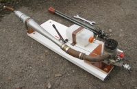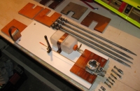 Není to přímo model, ale pro modely to je 100%. Viděl jsem různá udělátka, nebo jenom desky ve svěráku. Tak jsem si postavil něco podle sebe a hlavně aby to bylo flexibilní na různé motory. Takže velká lamino deska jako základ a malé destičky podle výřezů motorů. Stolek snese spaláčky od 0,8ccm do 20ccm bezpečně. Kulisa ovládaní plynu má více možnosti montáže, aby táhlo řízení plynu bylo v ose s karburátorem. A zároveň kulisa se dá přitáhnout, aby se sama zabíhajícím se motorem nehejbala. Nohy nejen že lze zarazit do země, ale i drží desku s motorem. Opravdu mi šlo hlavně o pohodlí a bezpečnost. Nádrž klasická anglická. Na fotkách s motorem MVVS-10ccm.