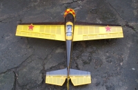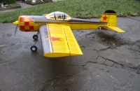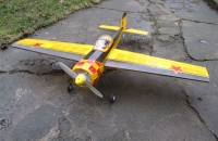 Kamarád dostal tenhle model od svého známého s přeraženým trupem.(Asi na něj něco spadlo).Nevěděl si s opravou rady, tak jsem ho získal já.Zbývalo jen slepit trup, potáhnout a vybavit elektronikou a pohonem.Při zalétávání jsem s ním havaroval (vyhořel regulátor)tak jsem znovu ještě opravoval předek a znovu potahoval.Letové vlastnosti - nic moc, ale model je velmi skladný , na louku za městem dojedu na kole s modelem v tašce.