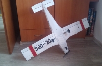19.5.2018 proběhl úspěšný zálet. První start byl raději nad pole s řepkou( alespoň na něco je užitečná), ale model po menším dotrimování létá stabilně a nezáludně. S tímto motorem stačí něco málo přes půl plynu aby držel horizont a oproti očekávání nemusí ani "jezdit" moc rychle a na přistání se nechá celkem vyhladovět. Děkuji zde přítomným kolegům za rady ohledně pohonu, s tím původním( motor cf 2812 a vrtule 8x4) bych měl celkem jistě problémy model udržet ve vzduchu, tah je nesrovnatelný.
