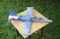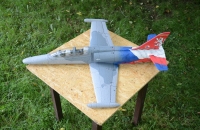 Tento letoun jsem si pořídil protže jsem chtěl něco trochu jiného než s čím jsem létal do teť.Je to můj první model na dmychadlo, a mohu říct že mě velice mile překvapil jak kvalitou výřezů( výřezy z EPP jsou od firmy LM model), tak letovými vlastnostmi. U tohoto typu materiálu nemůžu počítat s nijak kvalitní povrchovou úpravou, ale mě šlo hlavně o jeho skoro nerozbitnost. Z EPP mám již Čmeláka a také naprostá spokojenost. Abych si s modelem alespoň trochu modelářsky vyhrál zvolil jsem kamufláž k desátému výročí služby typu L-159 v AČR.( V roce 2010 získalo Aero L-159T1 na zadní část nástřik u příležitosti 10letého výročí služby typu L-159 v AČR. Cvičná dvoumístná verze L-159T1 vznikla přestavbou jednomístné bojové L-159A) Letadlo včetně kreseb na zadní části je natřeno štětcem akrylovýmy barvami. Ještě jsem dodělával cockpit s piloty, které jsem vyřezal ze zbytků EPP. S modelem létám většinu času na 50 -75% plynu, a se současným vybavením je letový čas kolem 5min.