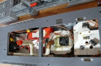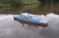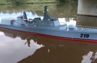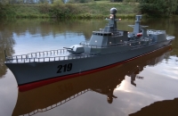S taťkou jsme stavbu začali když mi bylo asi 5 let. Dnes je mi 13 let, a máme skoro hotovo.Volnou předlohou nám byl čínský torpédoborec Shenyang Type 051C, který jsme napasovali na darovaný trup asi 30 let starý. Původně to měl být výletní parník... :-).Posuďte sami, jak se nám náš "škuner" povedl. Máme ho pro radost a tu nám dělá dostatečně :-). škuner svítí, houká, kouří z komínů, hýbe se mu dělo a radar se točí pořád dokola.