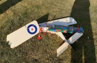 Zdravím modeláře, jaro je tady a i "SE5a" vyletěl, první let a jebnul jsem s ním o zem.Trup napůl, spodní křídlo napůl a npodvozek našrot. Čím to? No rukama, protivítr dost velký asin 5m/s a protislunko. Pár vteřin jsem nic neviděl a byl na zemi.