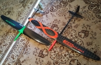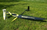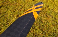 Už tretí vývojový stupeň hádzadla Infinity. Má nové krídlo , chvostové plochy z biaxialu a nový kozlík výškovky. Krídlo sa podarilo spraviť po 3 nezdaroch, keď sa mi síce podarilo 2x spraviť pekné krídlo z carboweave 30gsm ale flutterom som ho zničil. Na krídlo je tá tkanina veľmi jemná, možno v kombinácii s rohacellom by o bolo fajn. Tieto dve mám spravené z homemade biax jednosmerka +-45st 2x30gsm tj celkovo tkanina 60gsm a ten druhý je z odloženého textremu64gsm ešte na INF2 . Pretože bol odložený medzi papierom sú tam vidno zalaminované čiastočky prilepeného papiera, ale povrch je celkovo hladký. Neviem prečo ale subjektívne lieta lepšie ako to prvé. Krídlo s takouto tkanonou (prvý aj druhý prípad) vyjde na 120g aj s integrovaným kolíkom ktorý sa robí spolu s krídlom