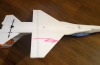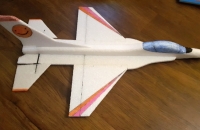Co dělat když je Corona a jste doma. Stíhačka zmenšená na 75% pro radost a pro vyblbnutí. Díky malému rozpětí se vejde na zadní okno.Serva 2,5 g z Hobbykingu.