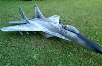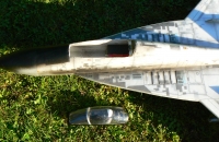 Model po obědnání přijde vytištěný na dvou depronových deskách který se z nich vyřízne naohýbá případně potáhne nažehlovací folií a slepí lepidlem na depron např UHUpor.Takže kolonka jak postaveno (ze stavebnice) není zcela přesné určení ale jiná bližši volba tam není.Takže třeba brát trochu z rezervou :-) Spíše je jen na Vás co a jak s deskama provedete viz fota ve foru ke stavbě. Možností je vcelku dost a je jen na vás jaký potisk depronu si zvolíte a obědnáte na výběr máte momentálně 2 verze polskou a slovenskou.Moje volba byla potištěný depron ve verzi ve Slovenské kamufláži Digital Camo tvarovaný a potažený matnou modelářskou folií dle mého do vcelku zdařilého tvaru Migu 29 .Dále osazeno světelným modulem a led světlama a led prstencema uvnitř výtokové trysky s nalepeným silonovým chmýřím navázaným na výkon motoru kdy se po přidání plynu prstenec plynule rozsvěcuje do oranžové barvy.