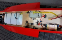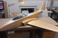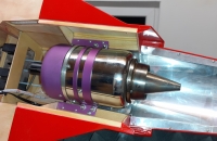 Cvičné éro na turbínu je postavené podle plánku od Ziroliho. Je celobalzové, křídlo a VOP s PS jádrem. Zatahovací podvozek je pneumatický vyrobený doma za použití jen soustruhu, stojanové vrtačky a pilníku. Zatím drží :-) a vyšel na pár stovek. Ještě nemá brzdy, ale na trávě nejsou potřeba. Nádrž přes 2 litry + 0,25l krmítko. Vzletová hmotnost tak vyšla na cca 12,5kg. Let je velmi příjemný.