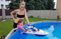 Tak jsem poridil druhou lodicku,sice letani mam na prvnim miste ale jak jsem si cuchnul k lodickam,tak to vubec neni spatny,jachta byla komplet vybavena uz lepsim volantovym vysilacem a silnym motorem rady 540,dokoupil jsem jeste dve baterie 8,4V 3300mAh at vydrzim u vody dele