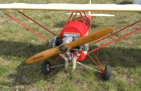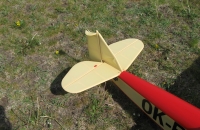 Dnes zálet, létá slušně, jen potřebuje ještě trochu potlačit motor. Bohužel lehčí kotrmelec po přistání do vyšší trávy, naražená směrovka. ale to se poléčí...