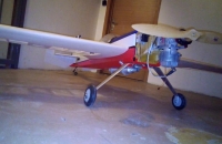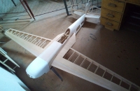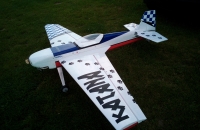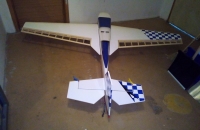 Model je postaven z výřezů od firmy Flyingwood.Původní rozpětí 2000mm jsem zvětšil na 2400mm.Bočnice trupu a domeček jsem vyrobil nové z březové překližky pomocí CNC. Jsou z jednoho kusu. Původní z topolovky mi díky extrémnímu vylehčení přišly příliš křehké.Zbývá ještě dodělat kužel vrtule,který je laminován do negativní formy.Pohání to motor EME 60 s namontovaným autostartem.Katana letěla hned na poprvé téměř předpisově.Bylo jenom třeba lehce dotrimovat výškovku.
