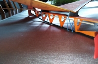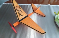 Křídla jsou přilepená k držákům. I toto má své kouzlo. Každý držák má svůj velký ZÁMEK který zapadá do protiotvoru v trupu, díky tomuto se dá posuvem křídla dopředu/dozadu měnit těžiště a není potřeba model dále dovažovat. Trojúhelníky mají zvětšené otvory pro snadnější upevnění gumy. Rozpětí je maličko větší stejně tak i délka trupu. Snad mi tuto vymoženost neokopíruje nějaký Číňan nebo Němec :D