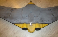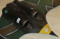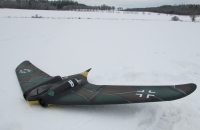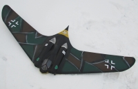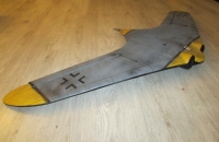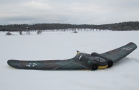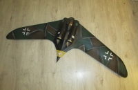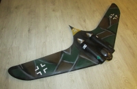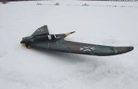 Tak dnes konečně proběhnul test(zálet-nezálet) a není pozitivní :-(((( Musím říct,že jsem uskutečnil 10.startů a nejdelší let trval cca 20.sekund a už to vypadalo dobře(musel napípat na trimu dost natažené elevony),ale po vystoupání do 20.metrů a stažením(spíž ubráním plynu cca na 70%) jde horten do krásné ploché vývrtky,z které není uniku!!! Ještě laboroval s těžištěm a ani přidáním zavážím o 100g na čumec,letovou vlastnost nevylepšilo! Prostě to lítat nebude !!! Takže jsem oprávněně znechucen a navždy končím s projektem Horten 229 !!!