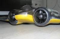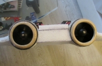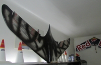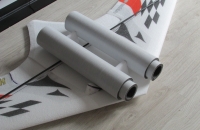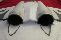 Poučen prvním neúspěchem jsem jako základ použil protentokrát HOTWING EVO 1200 opět šlehaný tmel,lepící nitrolak a vlies a stříknuto matnými spreji. Roury jsou od MIRELON STABIL o vnitřním průměru 63mm s 9mm stěnou a centrální nosnou karbonovou trubku(6mm) jsem vložil ze spod,aby nezasahovala do prostoru roury!