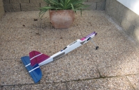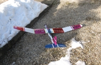 Cvičný model na učení pro začínající RC modeláře.Křídlo s větším vzepětím pro lepší stabilitu potah folií a velmi pevná kostra , trup z kostky extr. pol./vyříznut a zbroušen, velmi rychlá stavba, pro vystužení a zpevnění trupu byla vlepena uhlíková výstuha po celé délcetrupu, zespodu i z vrchu a i ze stran. Takže je trup prakticky nerozbytný , nátěr trupu /balakryl/.Řízení - směrovka , výškovka -motor. Model je velmi dobře stabilní a snadno se dá řídit, po srovnání pák vysilače přejde do rovného letu.motor kolem 150 W. Model je určen i do silnějšího větru,až 10m/sec.Dodatečně pro start se země přidělán podvozek s mechovými kolečky.....