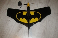 Koupeno na model bazaru pod názvem BAT a komplet překopáno do podoby Batmana,použit šlehaný tmel+potah vliesem stříknuto sprejem a samolepky vyřezány ručně balsořízem a přidělána ovladací VOP s velkou plochou a pořádně přemotorováno a naloženo o 200g vyšší letovku :-)