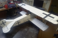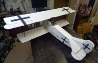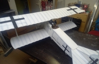 Stavba polomakety v měřítku 1:6.5 ve zbarvení Hermanna Goringa, listopad 1918. Protivník k mojí SE 5a. Klasická stavba z topol.překližky 3 mm a balzy, potah Solartex. Stříkáno akrylovými barvami na plastikové modely airbrushovou pistolí. Kapotování přední části je vytvořeno z plastikových tabulek tl. 0,3 mm, žaluzie jsou z balzy. Kulomety jsem koupil u BB model. Maketa motoru je 3D tisk z asi 20ti kusů. Musel jsem trochu dovažovat předek. Model létá spořádaně, výkon motoru stačí na maketové lítání s mírným přebytkem výkonu.