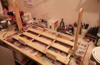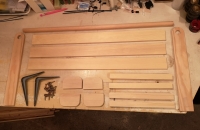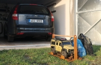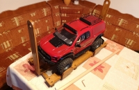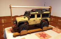 Různě se řeší, jak svá auta nosit. Já to do garáže mám cca 200m, ale i tak se těch 5kg pronese. A i když Defender se dá nosit za zahrádku, chtěl jsem to vyřešit jinak. Nosil jsem ho i ve větší tašce, ale ta manipulace nic moc. Podobný autonosič jsem někde spatřil na internetu a tak jsem si ho zhotovil podle sebe. Trochu prkýnek, nějaká ta elka a násada od smetáku. Nakonec jsem to nalakoval ořechovým lakem, občas po jízdě jsou modely mokré. A takhle to funguje druhým rokem k plné spokojenosti ...
