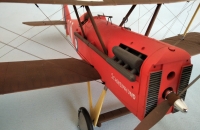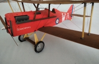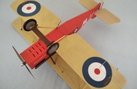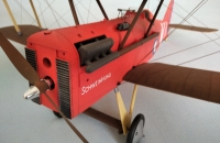 Model vychází z volně staženého plánku, ale z něj jsem použil jen obrysy, ostatní přizpůsobeno velikosti a zástavbě RC. Potah hedvábným papírem, vrchní barva emaily Agama, obtisky vytištěné na obtiskový papír (za mě poprvé a naposledy). Kola balzová, pneumatiky z pryž. profilů, malé nápisy bílou tuší, výplety z rybářského vlasce. Podvozek je odnímatelný. Ovládány všechny prvky, křidélka jedním servem přes táhla uvnitř křídla a přes vnější táhla na horní křídlo. Ostatní detaily asi celkem běžné. Chybí ještě horní kulomet a pilot, tak třeba se někdy dočkají..