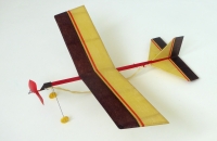 Známý model na gumu pro začínající modeláře, jehož stavebnici kdysi vyráběla firma IGRA. Dodnes si pamatuji, že když jsem jej jako malý kluk stavěl, sušení a vypínání potahu křídla, čerstvě natřeného nitrolakem, probíhalo u plynových kamen v koupelně. Najednou to udělalo puf! a z jedné poloviny křídla zbyla jenom ohořelá kostra.:-) Potah jsem opravil, model dodělal, ale moc nelétal. Asi dva okruhy ve výšce kousek nad hlavou, i tak jsem z něj měl radost. O několik let později vznikla ještě trojplošná verze, potažená tenkým oranžovým Modelspanem. Model létal jen o trochu lépe... Nyní tedy skládám reparát!:-)