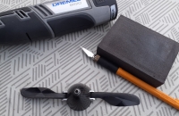 Kde,ale vzít to správné stoupání a průměry listů když všichni výrobci cílí na kat.F5J ??? Takže logicky muselo dojít k závěru,kdy jsem začal PRZNIT (krájet a brousit listy) aby to mohlo začít fungovat !