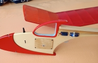 Model jsem postavil ze stavebnice uvedené firmy, je celo balsový s drobnými stavebními úpravami (uložení a oddělený přístup k akumulátoru, RC přijímač jsem doplnil mikro vypínačem aby se nemusel neustále demontovat kryt), dále jsem konstrukci VOP a SOP doplnil o diagonální výztuhy. Model jsem také doplnil vlečným háčkem. Potah modelu je papírem a lakován vypínacím lakem. I přes svoji velikost a profil má model docela slušné letové vlastnosti. Letové video jsem zkoušel při startu kratším gumicukem.