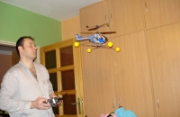 Je to přece jenom poletucha,vyvážené to nic moc není,takže při rychlejším přistání se to převrací hned na bok.A po rozsekání třech vrtulí jsem dal radši kříž,vyjde to určitě levněji.A druhá věc je,že to je vůbec můj první vrtulník,takže jsem vůbec nevěděl kde jakým kniplem otočit když to vzlétlo,ale po dvou týdnech létání už půjde kříž dolů.Už to mám trochu v rukách.