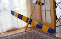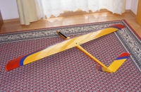 Asi zatím nejpovedenější, co jsem postavil. Trup je první pokus do negativní formy, vystuženo uhlíkovým rovingem, křídlo vakuovaný laminát na XPS výřezech (zbylých po předchozí stavbě), ocasky olaminovaná balsa.