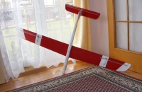 Tak s tímhle kouskem jsem se prolétal rokem 2008. První laminátový kousek po Wild Hawkovi. Dost si užil přistávání v oraništích a loukách a je to na něm vidět, zvlášť trup volá po generálce. Přece jen jsem "polní" letec. Teď je bez motoru (ten je už jinde). Nějak se nemůžu rozhoupat to spravit...
