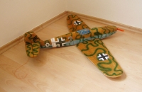 Další kombatový, tentokrát hodný mazel do rodiny :-) Na rozdíl od mého prvního kombata YAK-3 je "Mezek" moc hodné éro...samozřejmě v rámci možností... Zatím má za sebou úspěšný zálet a několik letů za barákem. Na zábavné víkendové kombaty ho zatím neberu, protože ho hodlám do ostrého boje pustit v rámci nejbližší společné akce našeho klubu. Oproti YAKu-jsem ho osadil rychlejším servem na SOP, což se projevuje logicky rychlejší reakcí éra při soubojích. Momentálně dodělávám (záměrně až po záletu) maketový kužel, který jsem po neskutečném shánění nakonec sehnal jako polotovar u firmy Flying Styro Kit.