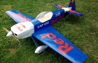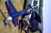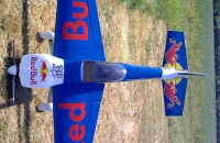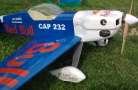 kridlo je polistiren potiahnuty balzou, boli k tomu dve desat centimetrove preglejkove spojky no po prvom lete som to rozobral a dal som tam dve 70 cm duralove trubky a prelaminoval som vrch aj spodok kridla tam kde sa to spajalo. foto trupu je na RKM-topmodel. stavebnica stala 1900kc bol v tom trup, kridlo, vyskovka, smerovka, prechodka vyskovky a smerovky, kryt motoru a kabina vsetko bolo potiahnute foliou ale trebalo to poprezehlovat. vsetko ostatne som dokupoval. podvozok, kolesa, kryty kolies a vsetku byzuteriu. nalepky ma vysli okolo 40 eur. motor je z motorovej pily, v nemecku som ju kupil za 70 eur. Vcera som skusal vrtule a najlepsia je 20x10 od graupnera. motor taha nad moje ocakavania, je to aj z dynamom takze bez starosti. pri druhom lete sa mi odtrhlo tiaklo od kridielka takze som pristaval len z jednym a druhe, lietalo na pantach. neviem ani ako som to zvladol, paky som vymenil. lieta to fakt dobre, motor je dostacujuci ale jasne na 3d to nieje.