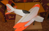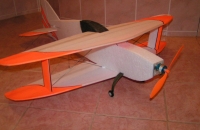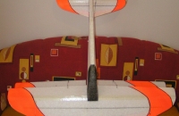Další epp akrobat na ven. Není to žádný rychlík, ale je velmi obratný. Je to vlastně předělaný Focus na prostorový trup, tak to už vypadá jako letadlo :o) Díky oranžové zvýrazňovací barvě je dobře čitelný. Je opět bohatě vystužený uhlíkem, uhlíkový podvozek, uhlíková táhla.