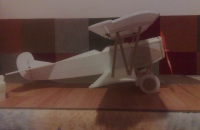 http://www.synprove.com/rc/DVIIDepron.htm. Plánik som si zväčšil na cca 1:10, stavba je z depronu (trup 3mm, krídla 6mm) a doplnená o balzu aby to bolo pevnejšie. Možný dátum ukončenia ... keď zleziem zo strechy + 5 dní aj s vytmelením a nastriekaním.