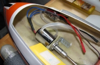 EDIT. na snekovu radu sem vytvoril demontovatelnou prepazku pro uchyceni motoru, zpevni se ulozeni hridele v trup a zamezi vibracim, kdy by motor mohl na samotne hrideli kmitat. Upevnovaci packy jsou lepeny epoxidem a jeste prelaminovany 3mi vrstvami tkaniny. No a osadil sem dvoulisty kovovy sroub pr. 28mm. Jeste vyzkousim baterii 4S 2200mAh.