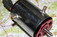 Pohon sem si docasne vypujcil ze svistika, prijde do nej jeste o neco tocivejsi motor a jiny regulator. I tak to jede velmi pekne. Za 300s jizdy jsem spotreboval 1250mAh, spickovy prikon 30A (320W), ustaleny cca 25-27A. Motor se hodne hreje i s vodnim chlazenim. Pri tomhle zatizeni bezi s bidnou ucinnosti asi 65%.