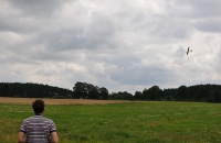 Dnes jsem s tím létal jen chvíli, musím si na to zvyknout a taky dost foukalo. Ta páska je tam z toho důvodu, že jsem začátečník a občas s tím někam švihnu (strom, keř, zem, ..) :-) Takhle to drží pohromadě.