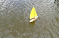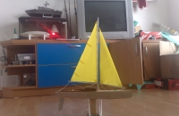 Malá plachetka ovládaná jedním servem zakoupená jako stavebnice zatím pouze nalakováná časem dodám fotky s barevným nátěrem .