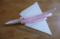 Model postavený podla plániku na internete. O letové zážitky sa podelím dúfam cez víkend. Zálet bol krátky 5s ale zvládol som to bez škrabanca s zlomeným špicom. Krásny lom čo po oprave ani nevidno. Po prepočítaní ťažiska v PC som dostal inú hodnotu ako bolo v plániku. Verím, že to poletí ako žihadlo.