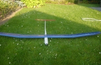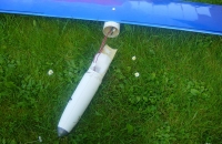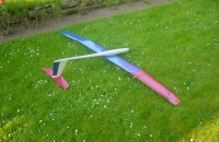 Náš svahový větroň. jméno nemá,.... .Serva tam nějaké jsou, ale jsou buď v křídlech a nebo v trupu kam není vidět jen na VOP servu (které je v SOP) je napsáno micro.....njn žádné označení... tak se omlouvám. Model byl původně na elektromotor, ale pak jsme začali létat žhavíky a dnes motor tvoří startér. Model dostal ,,kužel" a jeho konstrukce je prověřována na svahu. Nemám v okolí pořádný svah tak byl bez pohonu nahoře pouze jednou, ale to mě zradili baterie ve vysílači a tak jsem musel dolů. Od té doby se nám ho nepodařilo dostat nahoru jako poprvé, a tak byl uložen na skříň a odpočívá......