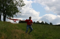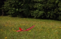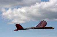 Malé házedlo s možností kruhového odhozu. Poměrně mě překvapila kvalita kostry i potahu křídla. Trup je laminátový s uhlíkovou tyčí. Ovládán je směrovkou a výškovkou.