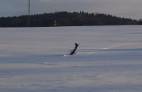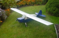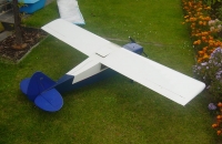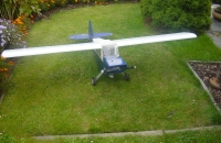 Náš ,,Hasky". Pár hodin už nalétáno má, ale mi nemůžeme přijít na závadu proč z cvičného modelu je něco neřiditelného. Létám s ním jen já protože taťka se ho bojí :-( nedávno se rozhodlo že Hasky půjde do důchodu a na stole se začíná rýsovat nová dvoumetrovka. Když jde na přistání proti větru tak je to krása a občas jako do peřinky, ale na našem chybně situovaném letišti je přistání docela oříšek. Když jedem na letiště tak fouká na les nebo bokem (přez auta....). čili 90% přistání je po větru nebo bokem na vítr. A když se sečte přistávání po větru a neřiditelný model tak ať si každý domyslí raději sám jak to dopadá....