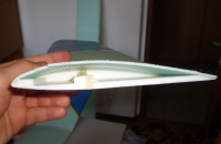 Jediným problémom bol len "flutter" na smerovke pri vyšších rýchlostiach. Preto havaroval ten modrý (flutter až do deštrukcie modelu). Na červenom som to už ale "vychytal" zmenšením plochy a vystužením páskou so skleným vláknom na nábežke kýlu.