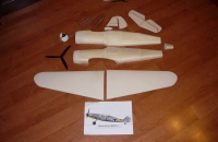 Mesoun v kamufláži Jagdgeschwader 54 Grunherz pilota Hanse Ekkeharda Boba vznikl téměř přes výkend,v pátek se šlo na výřezy,kolega Milan pomohl s výřezem křídla,plánek jsem předělal z třípohledové monografie,nalezené na netu.Stavba šla od ruky díky tomu,že jsem přešel na lepení vteřinovým lepidlem Evolite,zakoupeného na HC.Křídlo jsem modelspanem potáhl jen ze spodku,vršek je jen natřen několika vrstvami akrylátu.Po trupu,krerý jsem taktéž ošidil o potah, se tupírováním proběhl štětec s pěti odstíny šedivé,výsledek je myslím uspokojivý(nemám stříkací pistoli...).