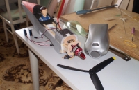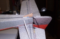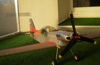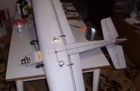 Krídlo som nalepil - nie je teda rozoberateľné, ako to doporučuje výrobca (paradoxne v snahe šetriť na hmotnosti). Všetka elektronika sa osadzuje zhora. Motorový kryt a kabína sú na vrutoch - kabína na dvoch, kryt na troch. Ostruhu som vyrobil svoju z 1 mm oceľového drátu, ktorý sa otáža v krátkej mosadznej trubičke. Cez výškovku a smerovku až do trupu vedie Soundalom 66A (náhrada Purexu) zalepené špáratko z bambusu pre spevnenie chvostových plôch. Možno som mal šetriť na ostruhe a na tomto riešení spevnenia chvosta, tiež som nemusel nalepiť vzpery výškovky - tak by som možno nemusel predok dovážiť tým závažím. Vydlabaný trup je od miesta polohy prístrojovej dosky až do motorovej prepážky spevnený dvoma borovicovými nosníkmi 6x6, čo je zrejme tiež zbyťočne "ťažké" riešenie. Krídlo má vlepený karbonový profil 0,5x10x1000 zhora, výškovka 0,5x4x350 odspodu. Som zvedavý ako to bude lietať, zálet plánujem dnes dňa 21.11.2009.