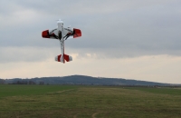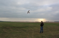 Padl na 13.12.2009. Nebylo to sice moc ideální počasí, -2° vítr 5m/s, tudíž hrozná zima. Nechtěl jsem již déle čekat,předpověď nehlásí nic lepšího spíše naopak s teplotami -10°.Vše proběhlo tak jak mělo,základní vytrimování výškovky jinak vše O.K. Letový čas jsem si dal na začátek 5 minut a dobíjel jsem 1980mA!!!Musím říct, že Thunder se chová jak velký 3m eroplán,drží krásně stopu,přesná akrobacie mu nečiní problémy a 3D mu není cizí,dokáže létat krásně pomalu na malém prostoru, zkrátka úžasné! Motor AXI 5320/18 s vrtulí Mejzlík 20x8E s tímto drobečkem nemá žádné problémy, z visu má stále ještě dost energie stoupat svižně vzhůru.