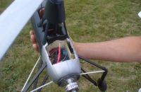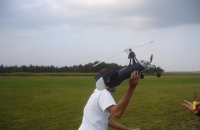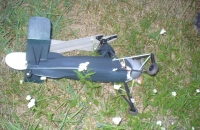 Zajimavá věc na řízení po větroni, dvouplošníku a vrtulníku. Chová se to tak nějak jinak než vše ostatní co mám a nebo s čím jsem létal. Nejvíce se to chová jako vrtulník. Přidal jsem navíc řízení směrovky. Bohužel, při druhém záletu za soumraku jsem žuchnul na ruce :-) Ale za dlouhých zimních večerů to opravím a tradáááá.