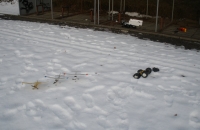 kouknete na video, pri startu sem nejak usnul :-) ale vubec nic se mu nestalo ,ani skrabanecek, krom toho foukal celkem peknej vanek a bylo 4 pod nulou, nic moc pro letani.
