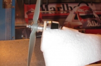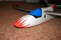 Hodně známých se podivovalo, že zrovna já si chci pořídit ES. Ale proč vlastně né? Vždyť je to výborný model a co pilotů už vycvičil. Koupil jsem ho na náhradní díly, čímž jsem si ušetřil nějakých 650peněz. Od Honzy Nakadaha jsem získal motor Axi. Chtěl bych totiž na ES vozit foťák Smart Mini-III, tak to chce silnější pohon. No, dal jsem doma plej motor a model (položený na koberci) se zastavil až o sedačku. Nestačil jsem ho ani zachytit. Tak jsem zvědav jak se bude chovat venku. Kromě použití stříďáku jsem udělal jenom tři změny na konstrukci. Udělal jsem větší plácadlo na směrovce, zvětšil kanály pro vedení tří kabelů od motoru k reglu, no a zvedl motorové lože kvůli použití 7palcové vrtule. S touto vrtulí to na zemi bere 10,3A a Watmetr píše výkon 105W.