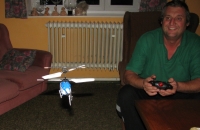 Kamarád Láďa mi ukázal, že se tento minivrtulníček dá v pohodě vodit po pokoji 3,5x4m. Tak jsem ho pořídil taky, jen v červené barvě. No, pořídíla mi ho vlastně ta moje pod stromeček. Je to na takový relax pro nepříznivé letové podmínky venku. A nechtěl jsem do toho moc peněz strkat. Umí lítat na všechny strany, včetně couvání. Ovládání infra. Doba letu kolem 9min a dobíjení z vysílačky kolem 20-25min.