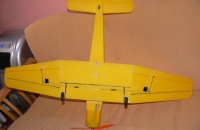 Tohle letadlo jsem taky lítal. Podle první fotky se zdá, že máš velký úhel náběhu křídla. Měl jsem taky problémy ho naučit lítat. Musel jsem nejdřív podložit křídlo u náběžky, aby byl úhel náběhu 0. Později jsem kvůli vzhledu vyřezal z PS vymezovací futýrka. Potom lítal jak z praku.